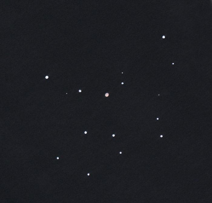 Basel 12: Sehr unauffälliger Sternhaufen, liegt um einen hellen, rötichen Stern. Es ergibt sich bei keiner Vergrößerung der Eindruck eines Sternhaufens. Die Sterne haben große Helligkeitsunterschiede von 9-14mag! Sehr unspektakulär.