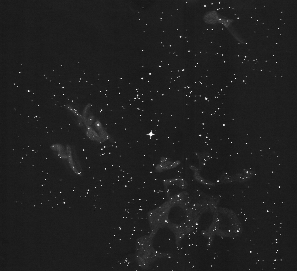 with several dark clouds. Very faint nebulosity extends almost to IC 1318A!
