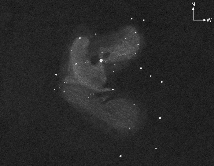 Westen durchzogen. Um den hellsten Stern sind nördlich und westlich kleine Dunkelgebiete.
