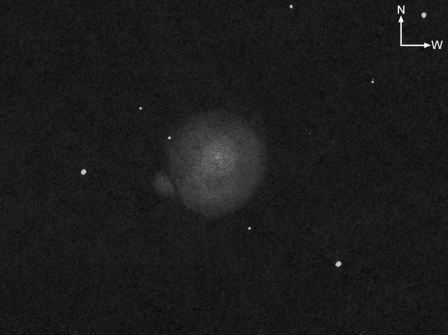 Heller zur Mitte aber kein stellarer Kern. Das Zentrum scheint nach N verlagert. Es sind keine weiteren