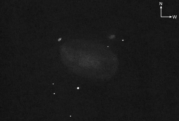 enhences it even more. The knot is elongated E-W and has a brightness peak west of the middle.