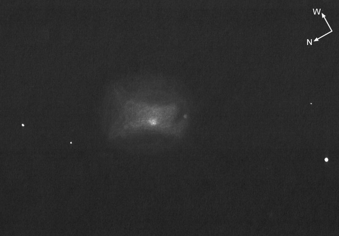 am Rand des hellen Zentralgebietes. Die Galaxie ist von einem runden Halo umgeben.