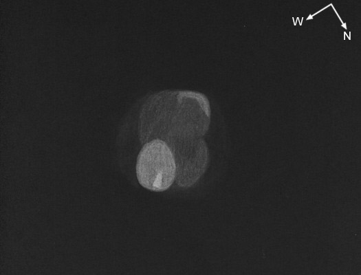 NGC 7027: Clearly blue at 139x. At 417x an extremely bright rectangular shape with curved edges is visible. It is elongated about 3:2 NW-SE. The quarter part in W is considerably brighter, in its north is an even brighter spot. The eastern edge is brighter too. In the middle of the NW and NE sides are small indentation. The nebula seems to be surrounded by a small faint halo.