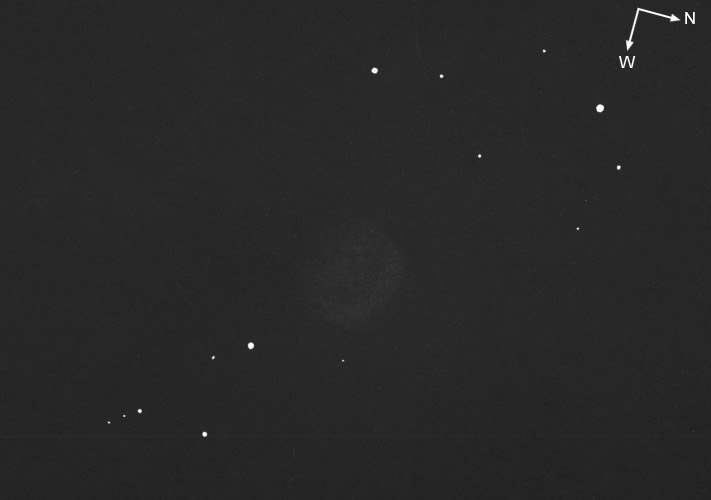HFG 1 has a pretty strong [OIII] line and was discovered on the Emission Line Survey. It appears only very faint on the POSS. HFG is the abbreviation of the names Heckathorn, Fesen, Gull.